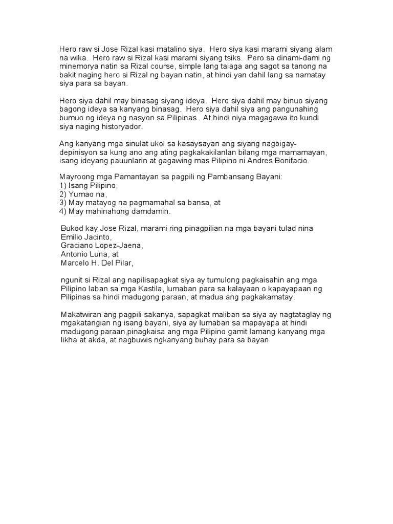 Si Rizal ay isa sa mga itinuturing na dakilang bayani ng Pilipinas.