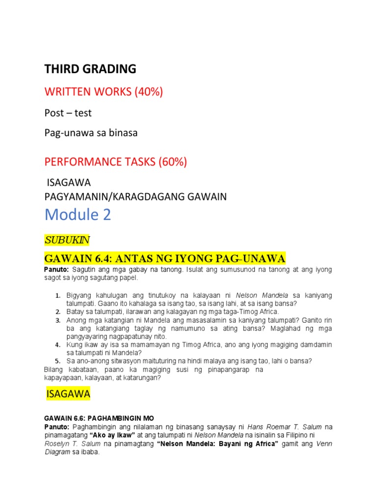 Mga Gawain Para Sa Pagmamarka Sa Ikatlong Markahan Module 5 Pdf